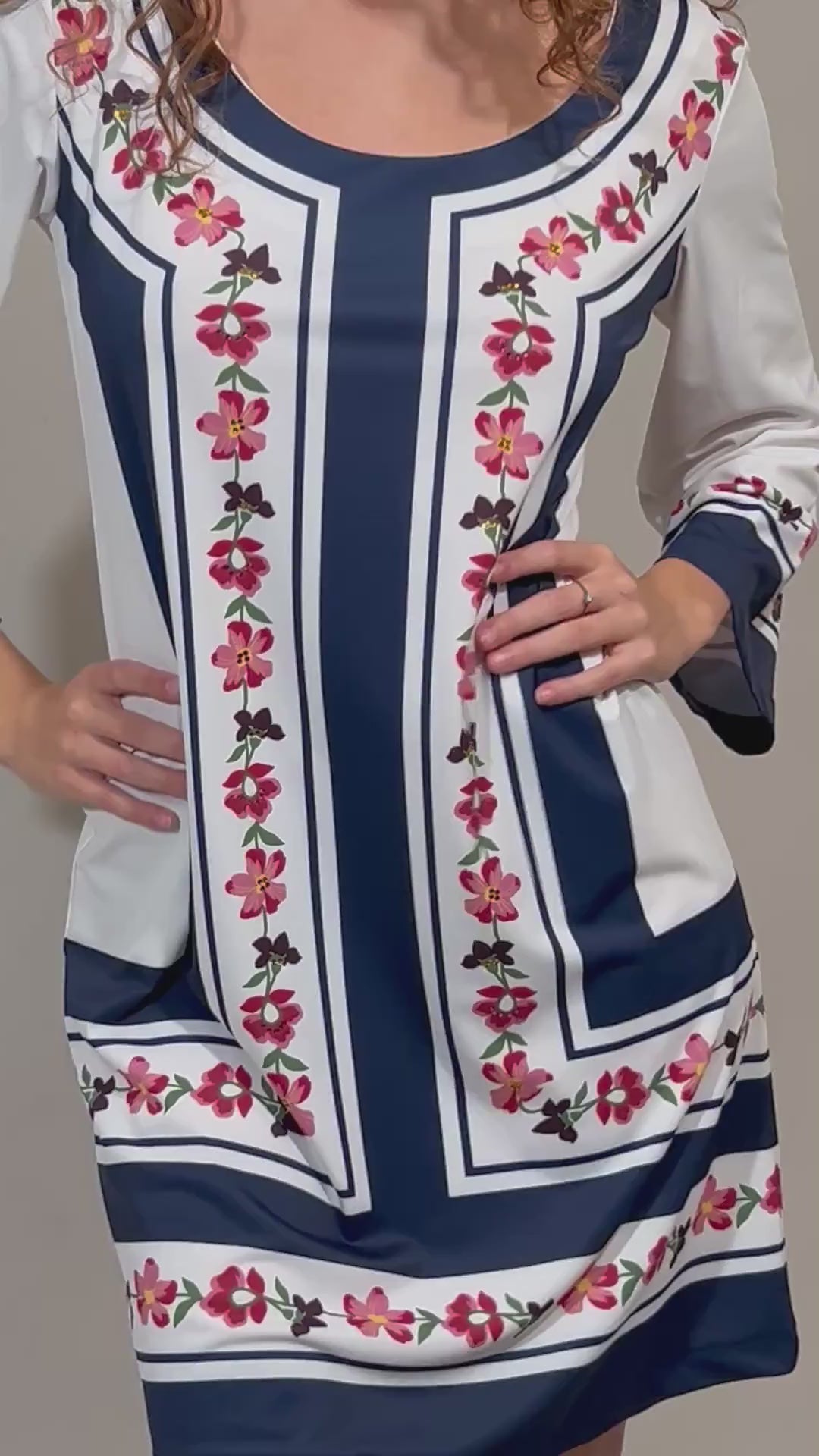Abito corto in lycra stampata firmato Raffaela DAngelo, con linea dritta e silhouette essenziale pensata per uno stile femminile e disinvolto. Lo scollo incornicia delicatamente le spalle, mentre le maniche 3/4 aggiungono un tocco boho chic e raffinato.