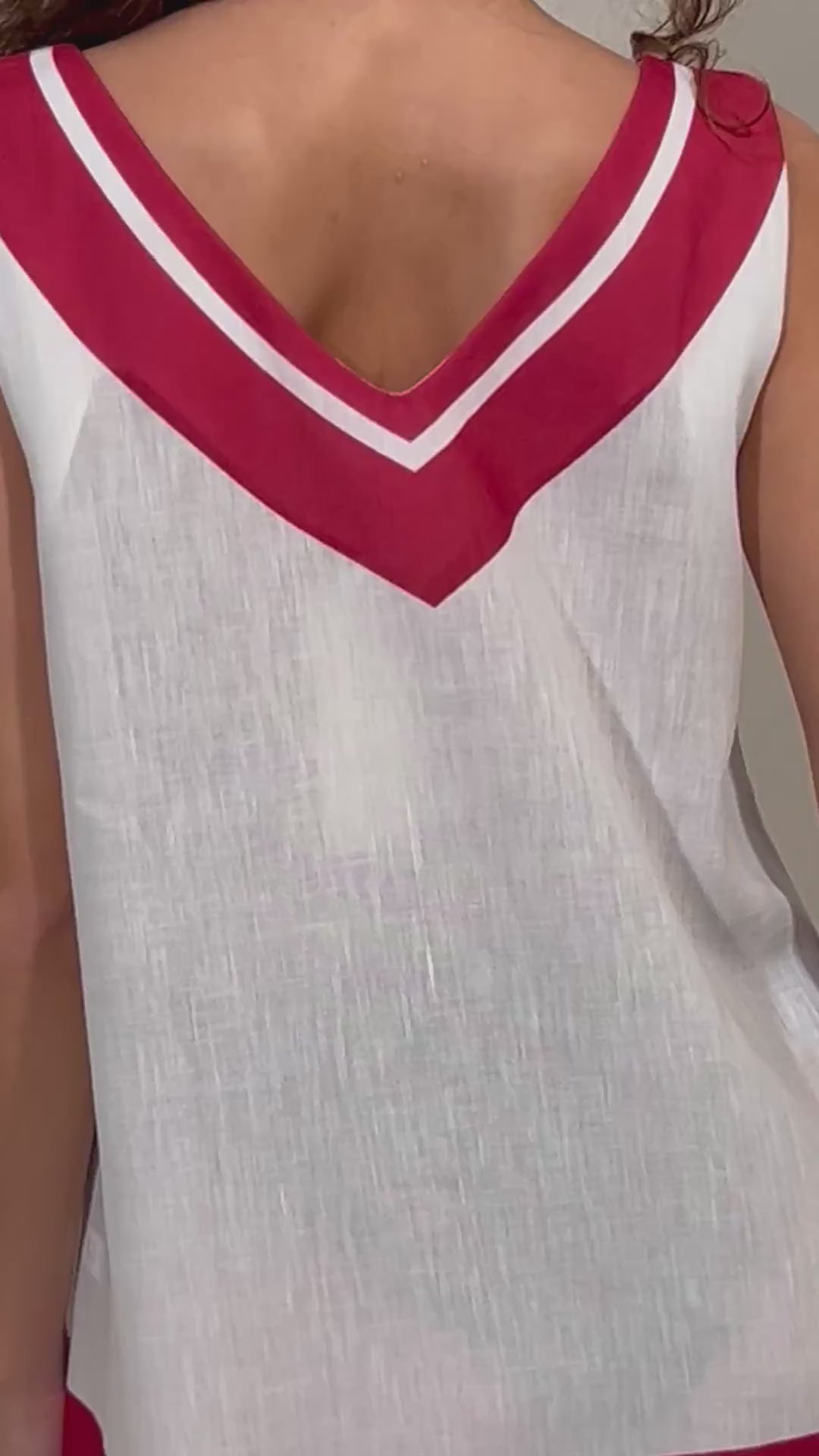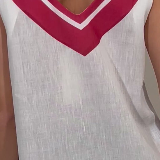 Abito smanicato dallo stile fresco e boho firmato Raffaela DAngelo, perfetto per accompagnare le giornate estive con leggerezza e raffinatezza. Il modello presenta uno scollo a V pulito e femminile, senza bottoni, per un design essenziale ma ricercato.