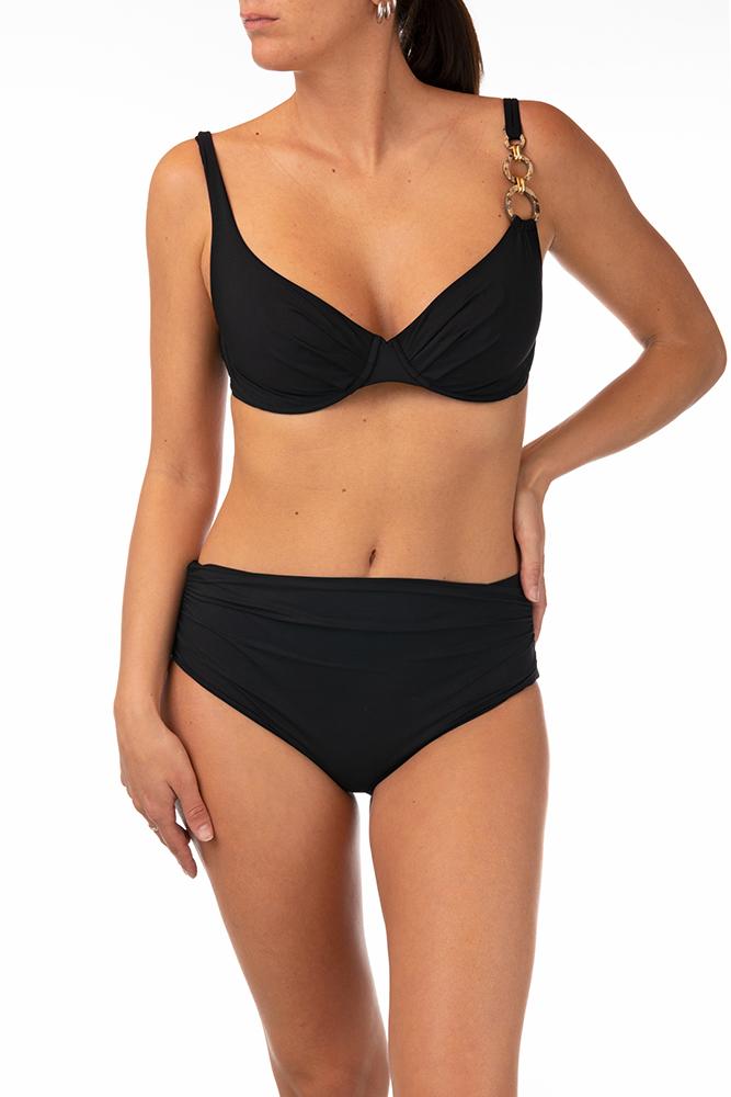BIKINI - LUISA MARIA LUGLI Bikini con ferretto in soffice microfibra tinta unita con dettaglio ad anello sulla spallina. Reggiseno con coppa differenziata disponibile in coppa D con spalline regolabili da cursore, chiusura con clip sulla schiena. Slip a vita alta leggermente arricciato. Disegnato seguendo le tendenze della moda, sofisticato ed elegante... per donarti massimo comfort e originalità!
